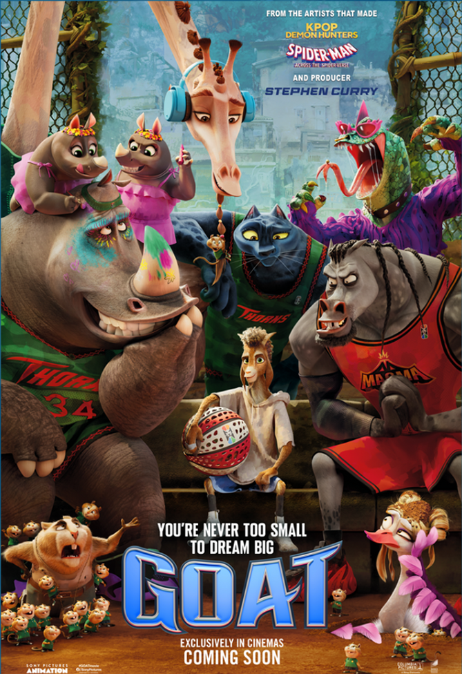 From the artists that made KPop Demon Hunters comes GOAT, an original action-comedy set in an all-animal world. The story follows Will, a small goat with big dreams who gets a once-in-a-lifetime shot to join the pros and play roarball. Will is determined to revolutionize the sport and prove once and for all that “smalls can ball!”