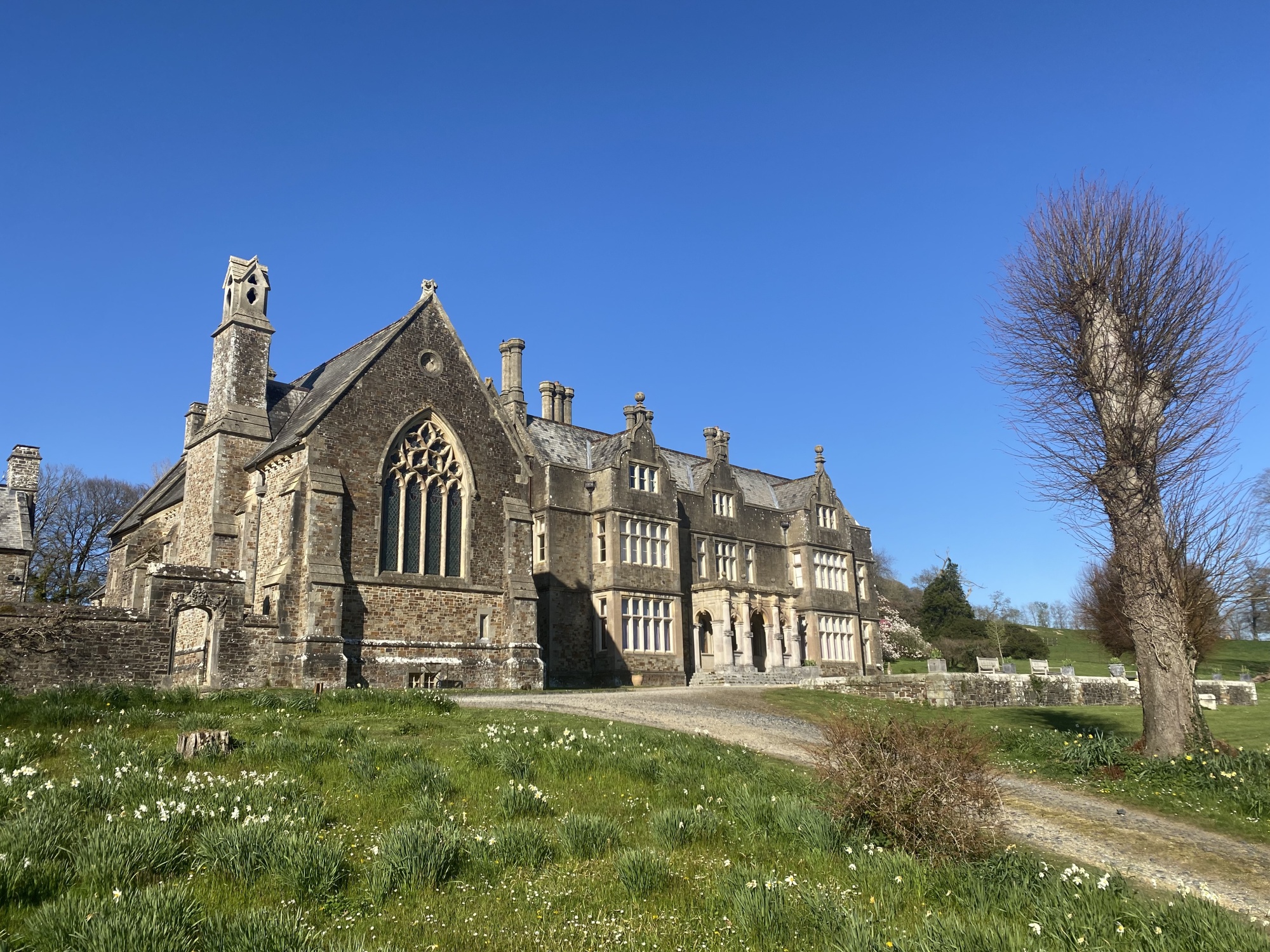 The house is approached up a mile-long wooded drive. The current Victorian house, a vernacular mansion in the 16th-century style, was built in the 1840s for Robert Chichester by Philip C. Hardwick. Hardwick produced a series of grand reception and family rooms with splendid views over the Taw valley and a staircase hall which forms the centre of the house.